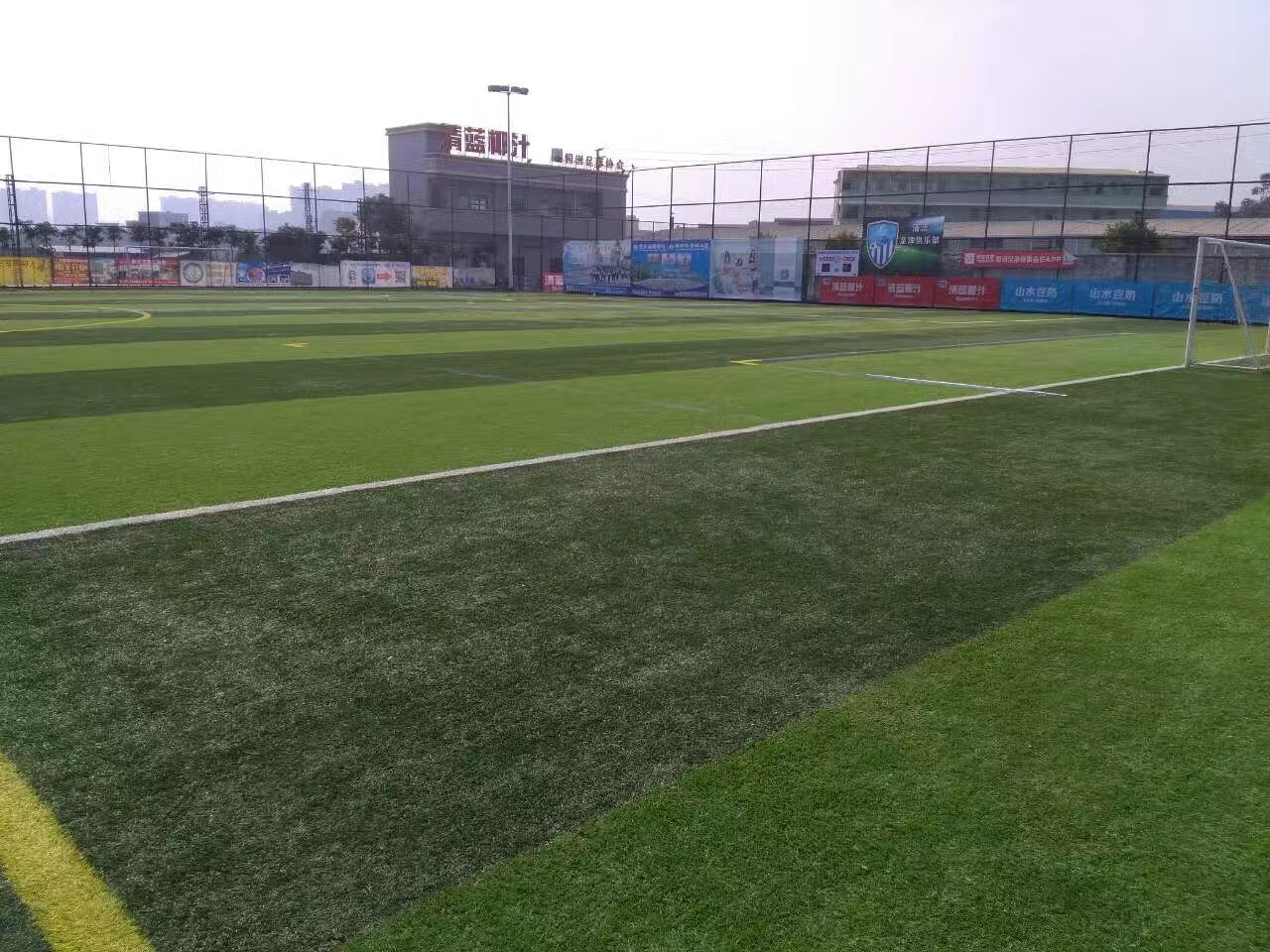 廣東省惠州市博羅縣某協(xié)會足球場場地完工圖如下,這個足球場在前期規(guī)劃線條時要比較麻煩一些,但是對于后續(xù)的使用是比較方便的。